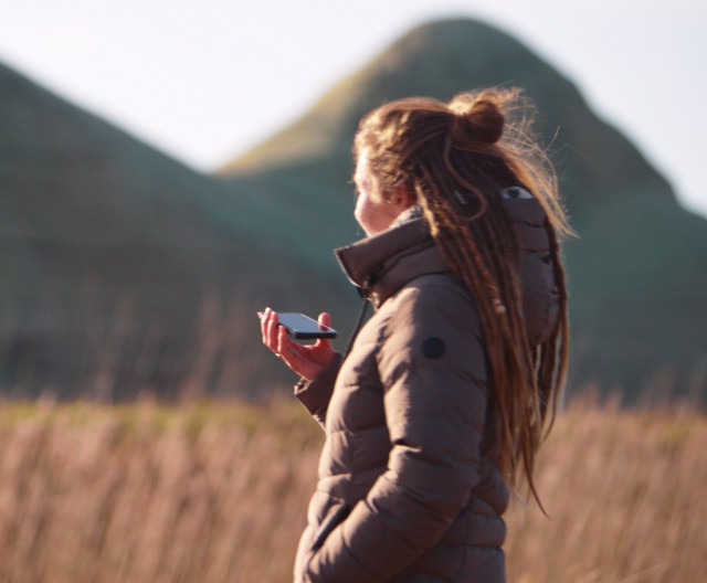 Je staat in het landschap, stelt een vraag, en er komt een antwoord, niet als een apparaat, maar als onderdeel van de omgeving zelf.